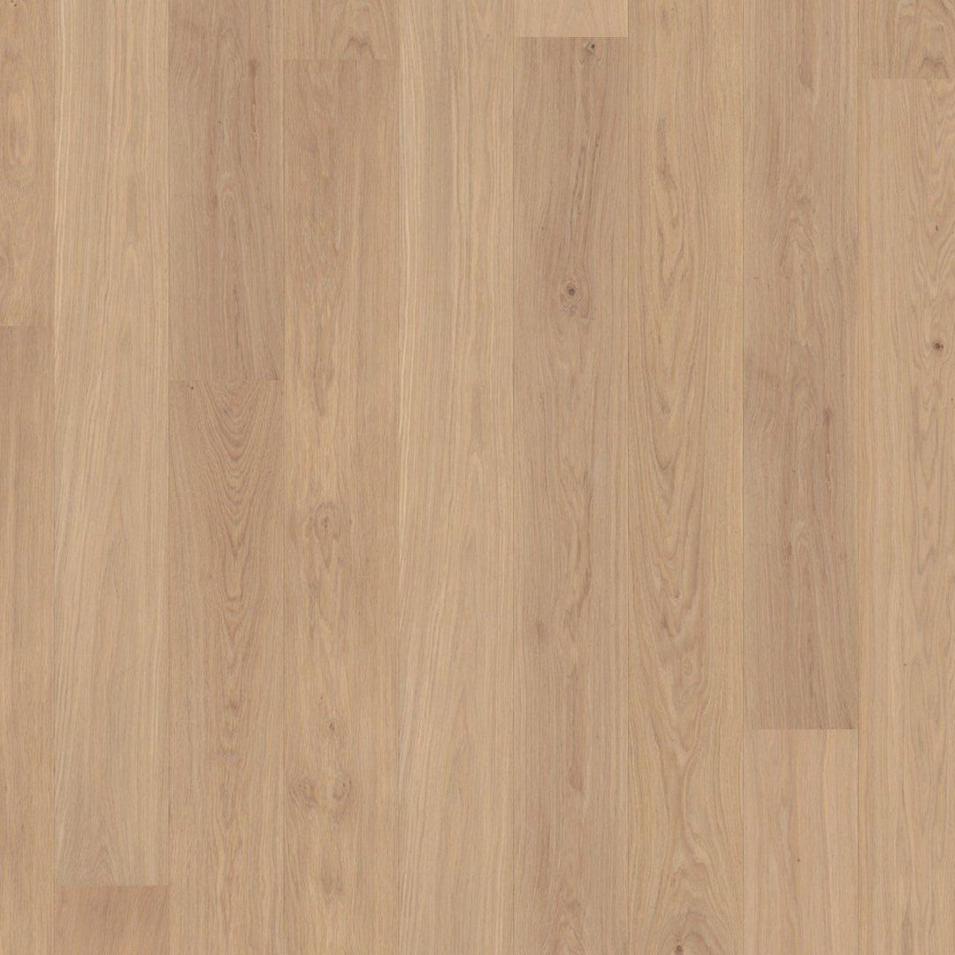 Boen Oak Andante Live Pure is a 14mm engineered wood floor with 138mm wide planks, designed to bring natural elegance into any interior. The Andante grading features a clean, uniform appearance with minimal knots for a refined, modern look. The brushed surface highlights the oak's subtle grain, adding gentle texture. Finished with Live Pure, it offers an ultra-matte, natural look with strong protection. Ideal for creating bright, contemporary spaces with understated sophistication and lasting durability.