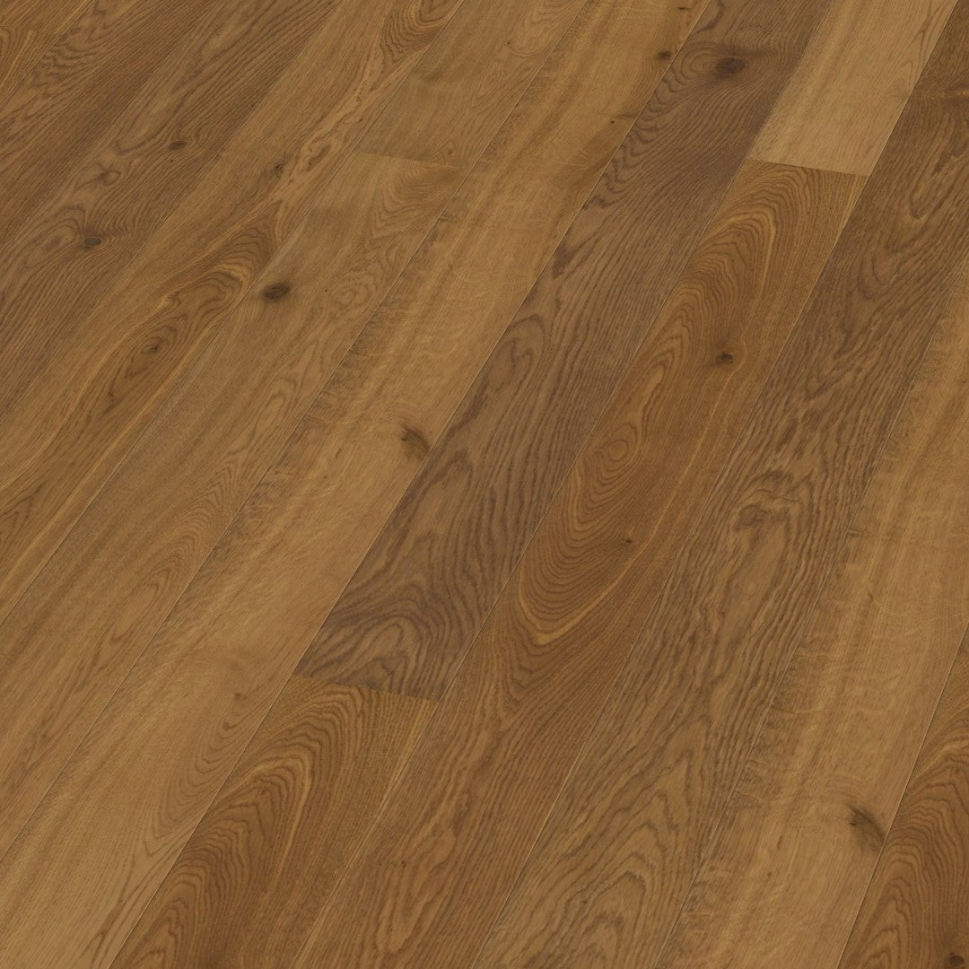 Boen Oak Semi Smoked Animoso is a 14mm engineered wood floor with 138mm wide planks, offering a warm, rich tone with subtle smoky undertones. The Animoso grading features natural knots and grain variation, enhancing the wood’s organic character. The brushed surface adds texture and depth, while the natural oil finish preserves the wood's beauty and provides protection. Ideal for creating rustic, yet refined interiors with timeless elegance and warmth.