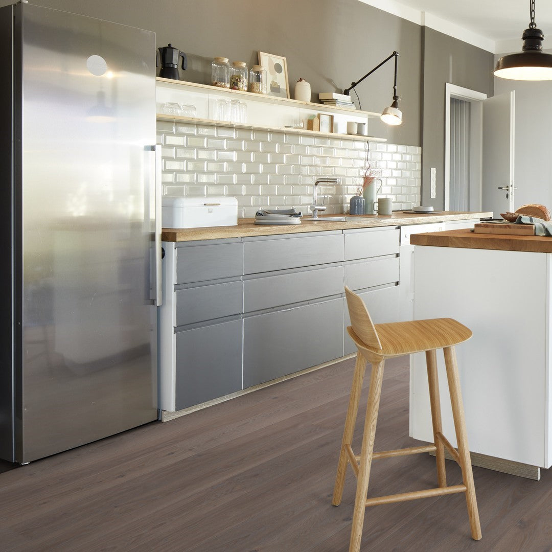 Boen Oak India Grey Animoso brings a subtle sophistication with its cool, earthy tones and natural oak character. At 13.2mm thick and 181mm wide, the planks offer a substantial, elegant presence. The brushed texture enhances the grain, while the Live Pure finish maintains a raw, untreated look with excellent protection. Perfect for refined interiors, this floor blends modern grey hues with the timeless beauty of oak—ideal for those seeking understated elegance and lasting quality.