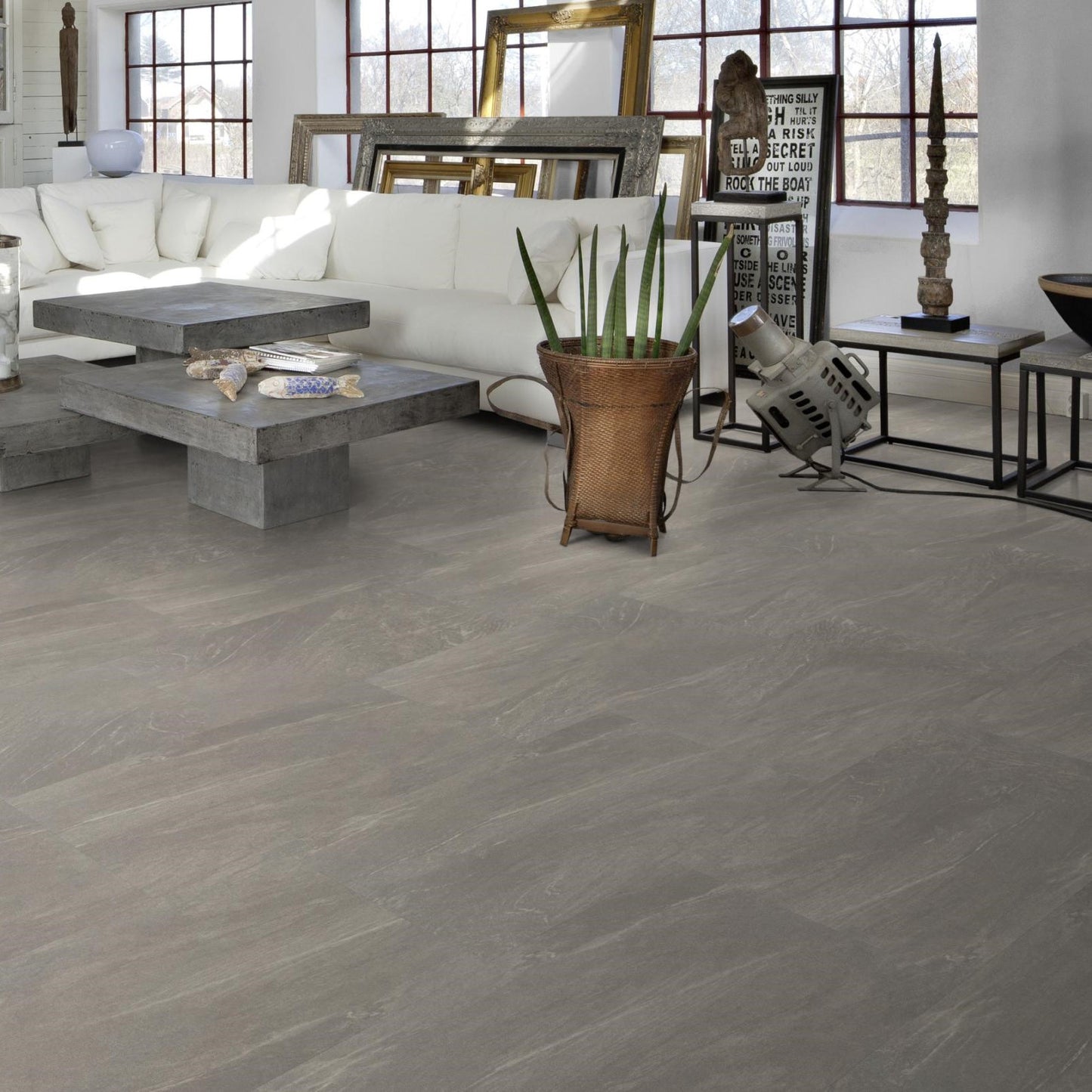 Grey LVT tiles floor