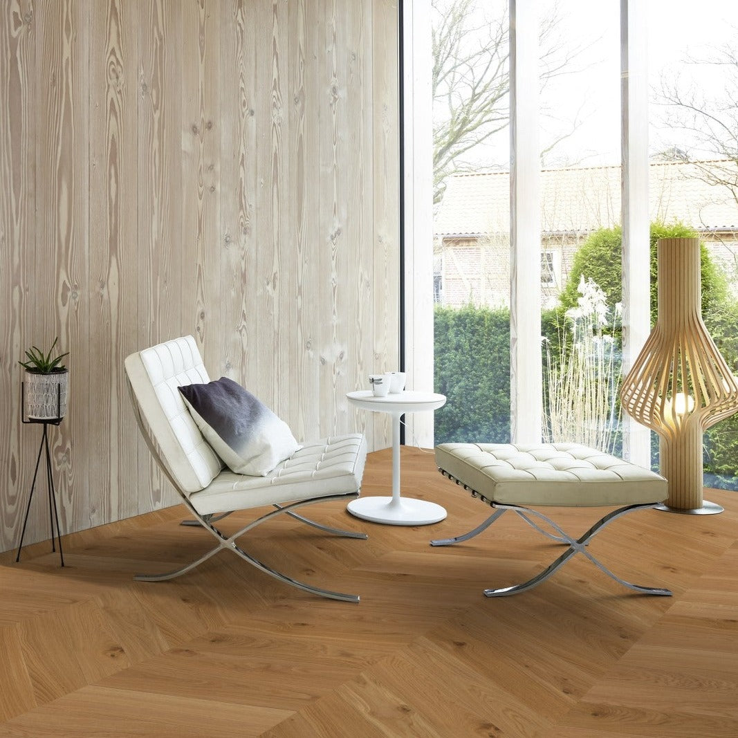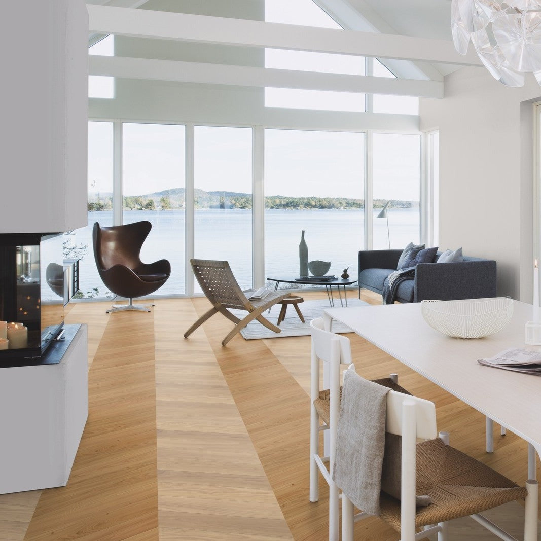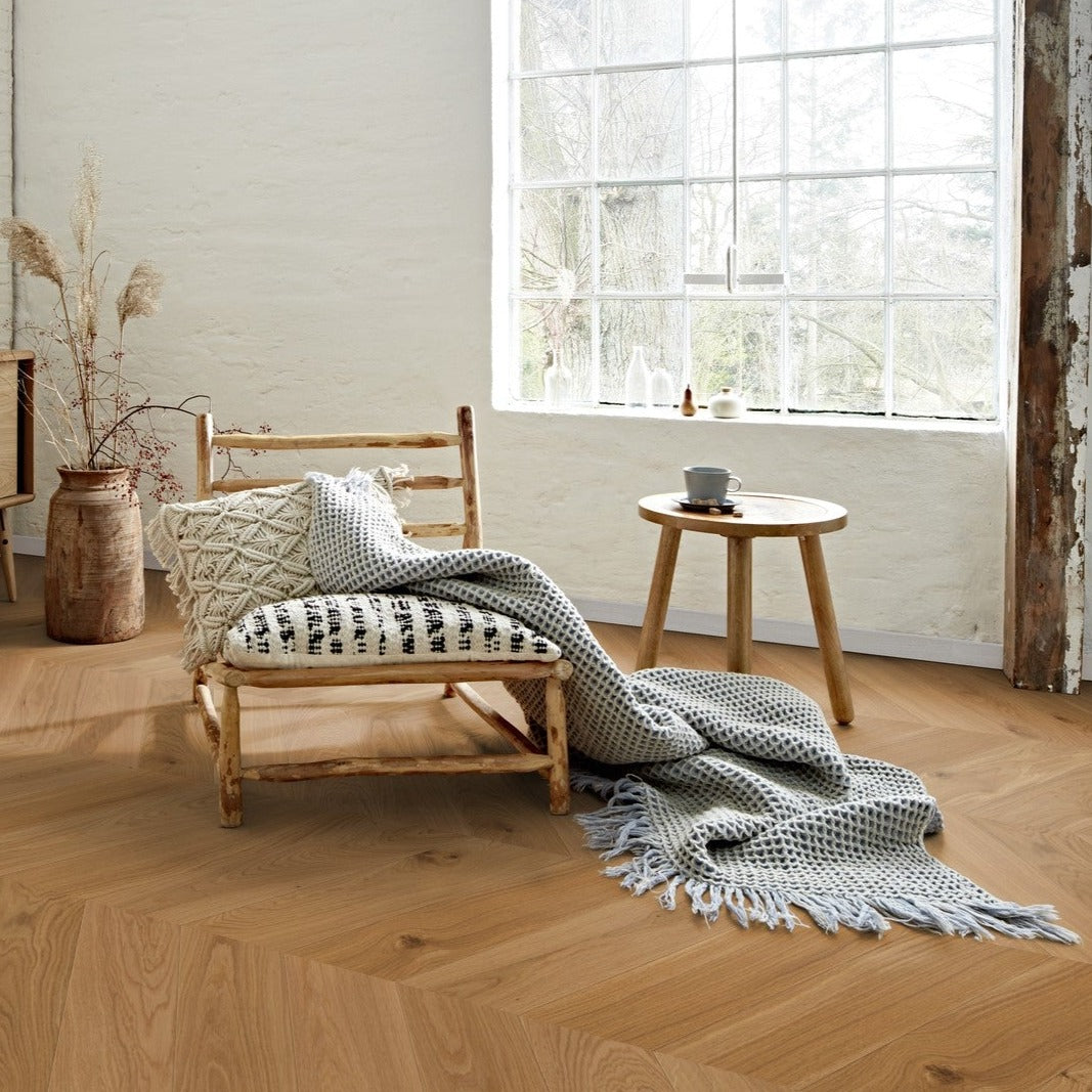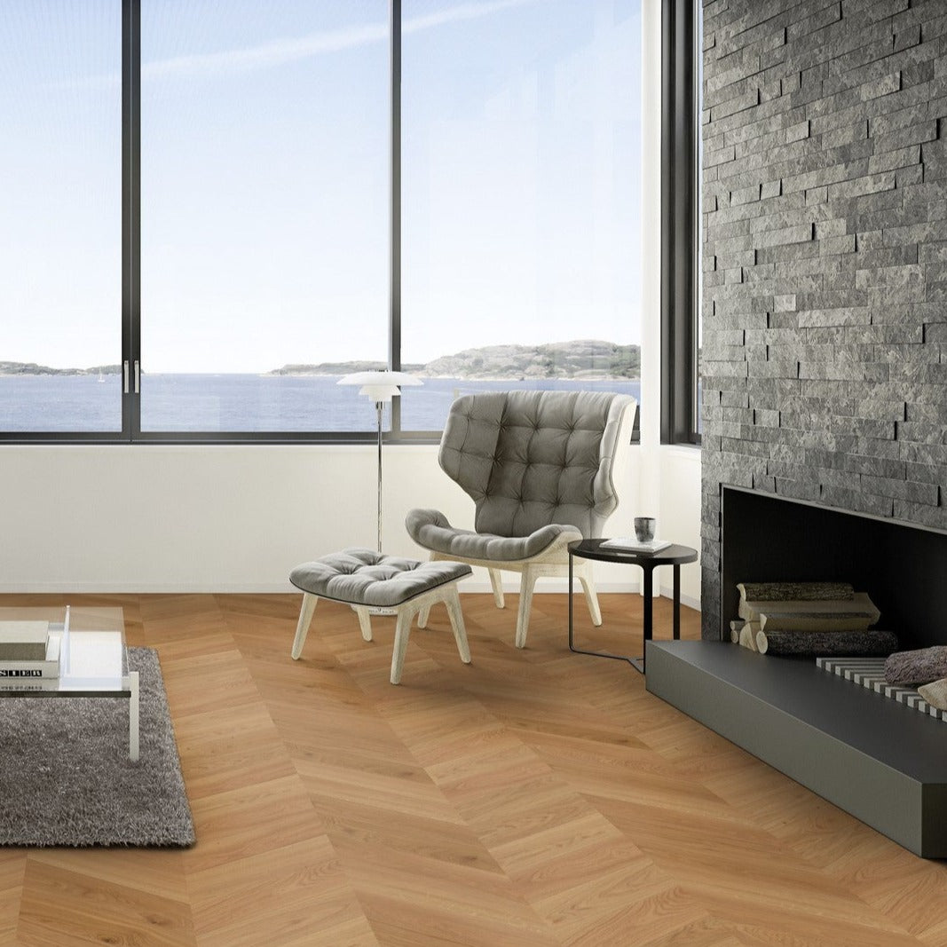 Oak engineered wood flooring is perfect for those who want the timeless appeal of oak without the concerns of warping or expanding that can occur with solid wood floors. Its engineered core allows for installation in areas where solid wood might not be suitable, such as basements or over underfloor heating. The top layer of genuine oak adds natural warmth and character to any space, making it a versatile choice for both contemporary and classic interiors.