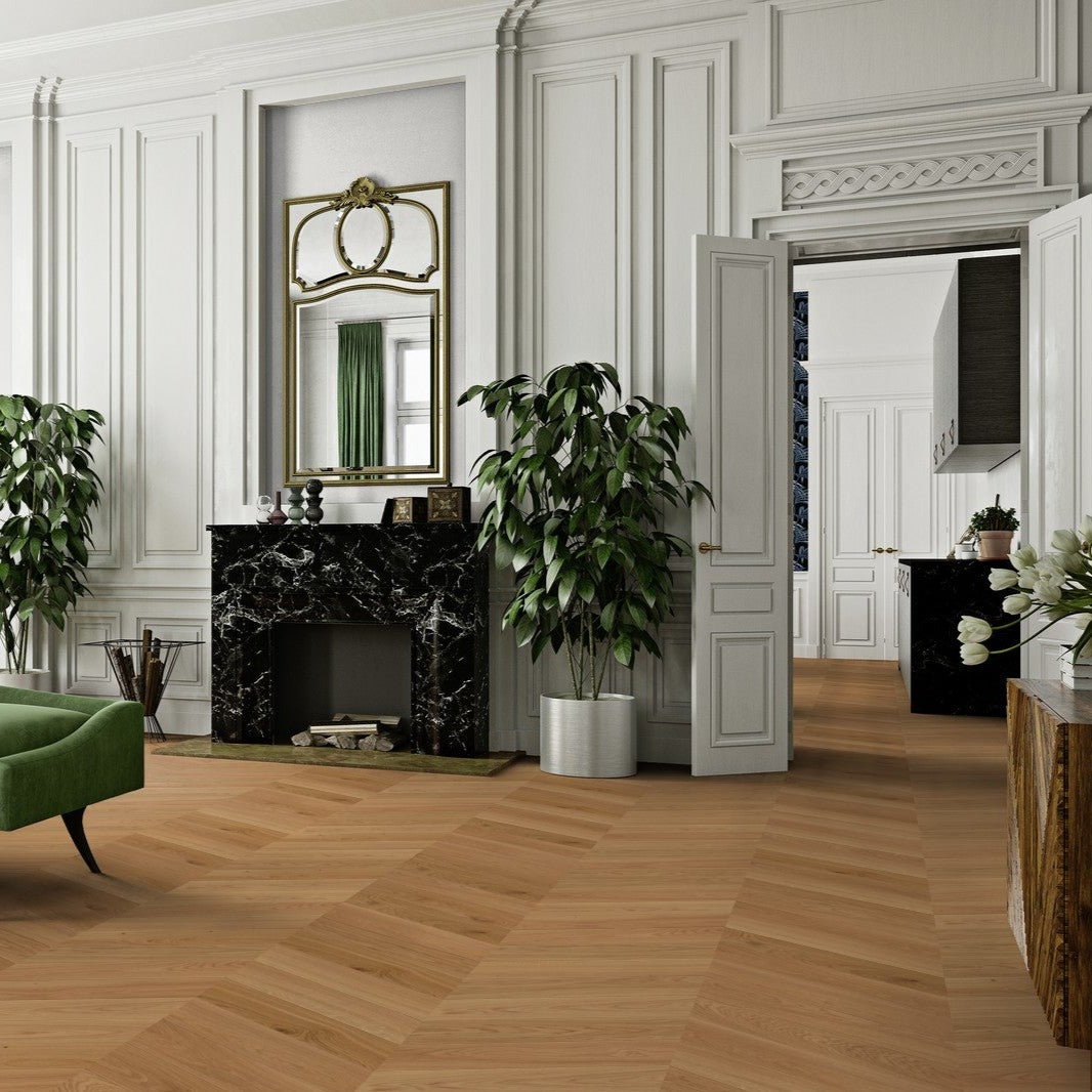 Wide Plank Oak Engineered Flooring: Provides a contemporary look with wide planks that create a seamless and spacious appearance.