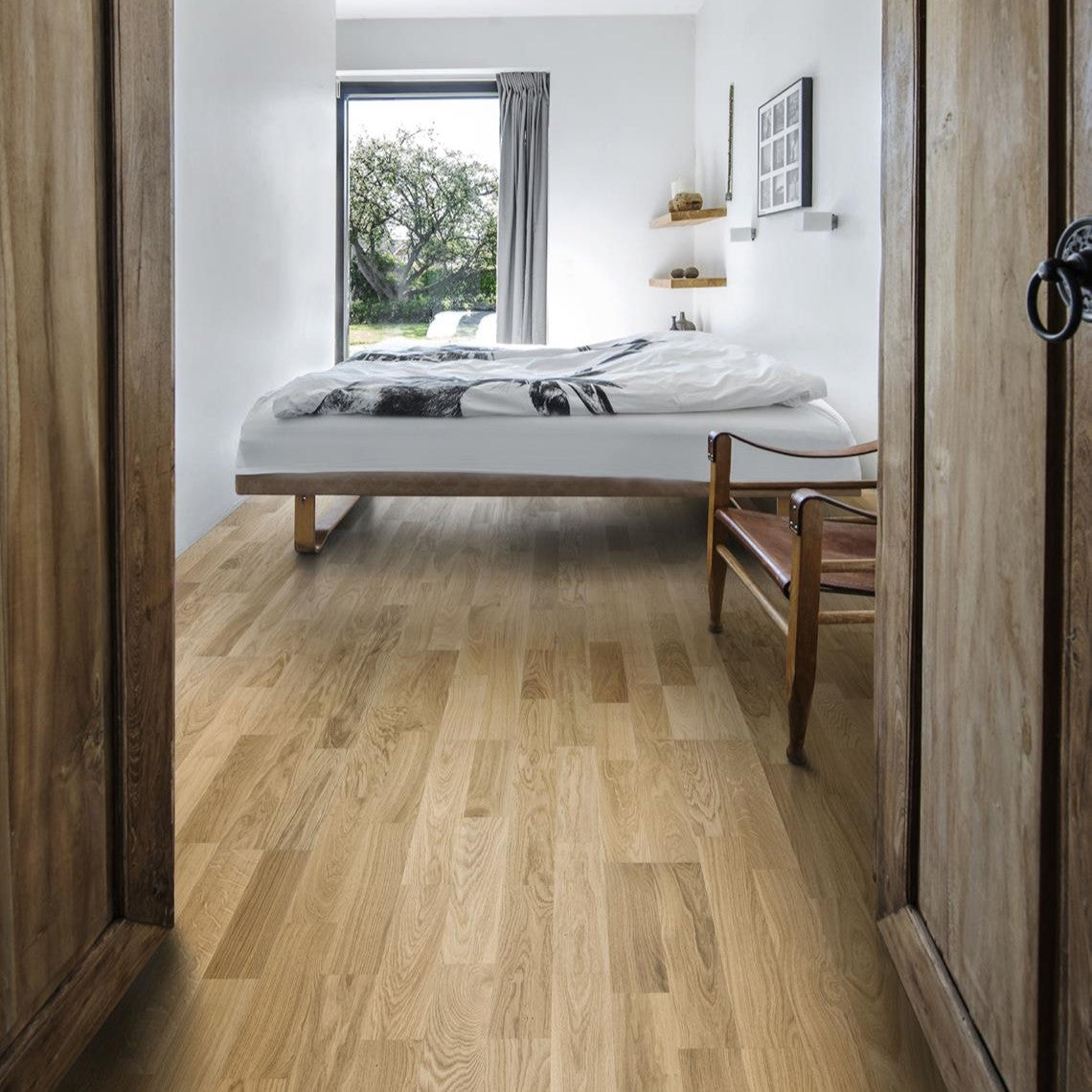 This is the Ultra Matt Lacquer version of the popular Oak Verona Engineered Floor. This Kahrs Oak Verona Town grade floor has a beautiful brushed ultra matt lacquer finish. The 2 strip designed planks have a deep grain and feature rich colours with amber shades, making this floor especially stylish. The process of brushing really brings the character of the grain to the surface.