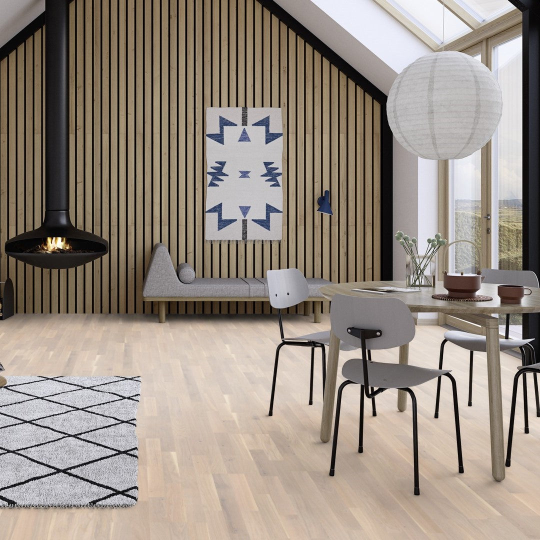 Boen 14mm Oak Grey Harmony is an engineered wood floor with 138mm-wide planks and a modern click system for easy, secure installation. The Grey Harmony tone offers a soft, contemporary look with subtle variation, enhancing the natural beauty of the oak. Finished with Boen’s innovative Live Pure lacquer, it provides a ultra-matt, virtually invisible finish that protects against wear while maintaining a raw, untreated appearance. This floor balances durability with a light, elegant aesthetic, making it ideal for modern interiors seeking understated sophistication.