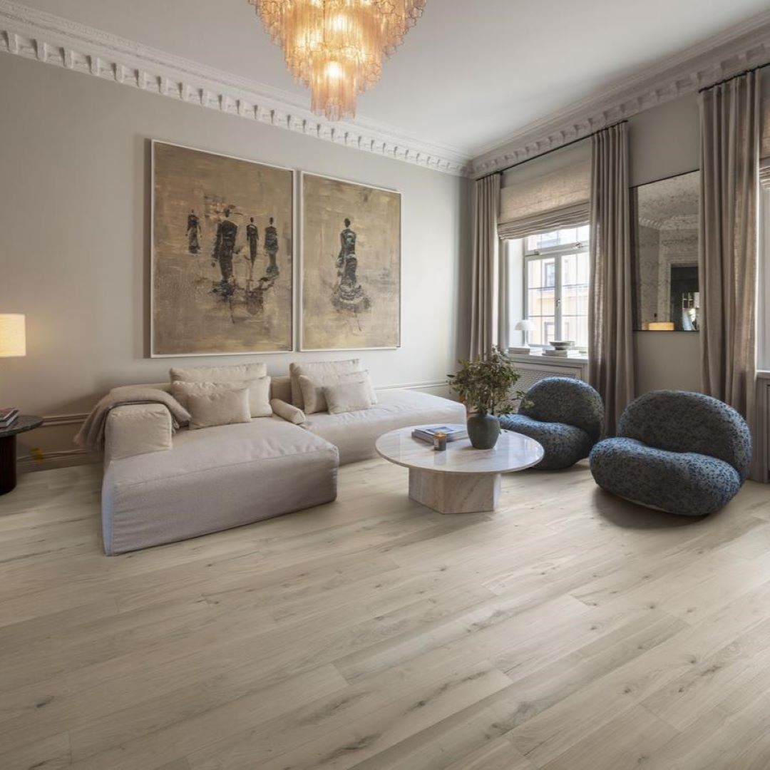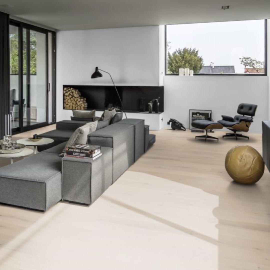 Kahrs flooring, ultra matt finish, white plank, durable, easy installation, eco-friendly, versatile style, home improvement.