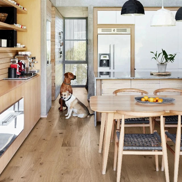 The Kahrs Flora Oak Gentian flooring is crafted with great attention to detail, featuring a stunning white oak finish that captures the charm and uniqueness of natural wood grain. Each plank is meticulously designed for a seamless and beautiful layout that enhances any decor style, from traditional to modern minimalist.