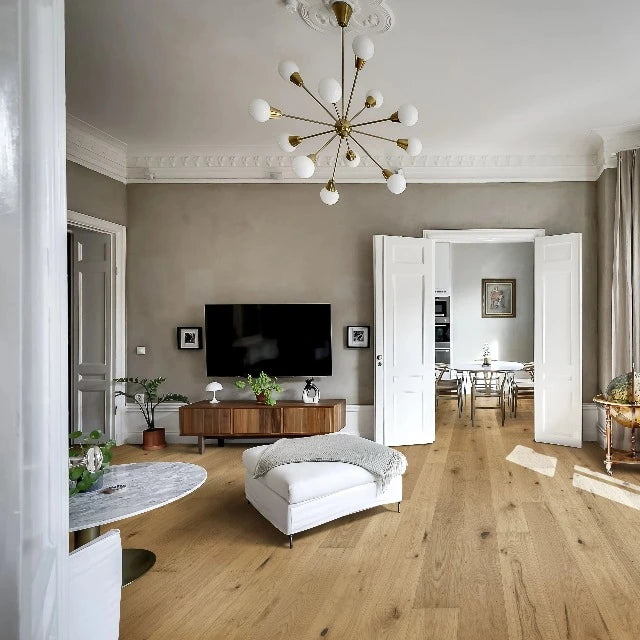 Whether renovating or constructing a modern space, Kahrs Flora Oak Aster Oiled flooring offers practicality and luxurious aesthetics. Its timeless look integrates seamlessly with any interior design, adding comfort and style to your daily life.