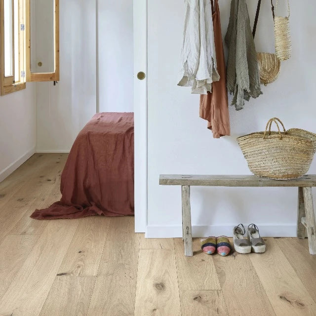 Kahrs Flora Oak Edelweiss, light oak flooring, sustainable wood flooring, engineered hardwood, UV protected wood, compatible with underfloor heating, residential flooring, commercial flooring, interior design.