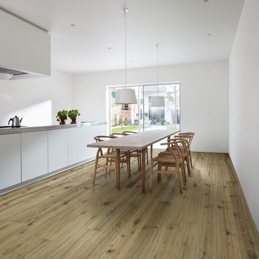 Elevate your space with the timeless beauty of the Kahrs Smaland Oak More flooring. Crafted with the highest standards of quality and designed to enhance the warmth and charm of your home, this hardwood flooring brings a sense of natural sophistication to any room. Each board is meticulously selected for its unique character, featuring rich variations in grain and color that reflect the true essence of oak.