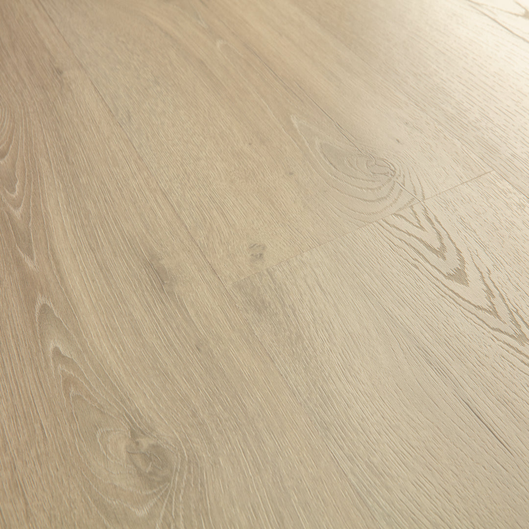 Quickstep laminate flooring, Sandy Greige Oak, durable laminate, easy installation, eco-friendly flooring, modern home decor, wood grain texture, low maintenance flooring, scratch resistant, stain resistant, fade resistant, noise reducing flooring