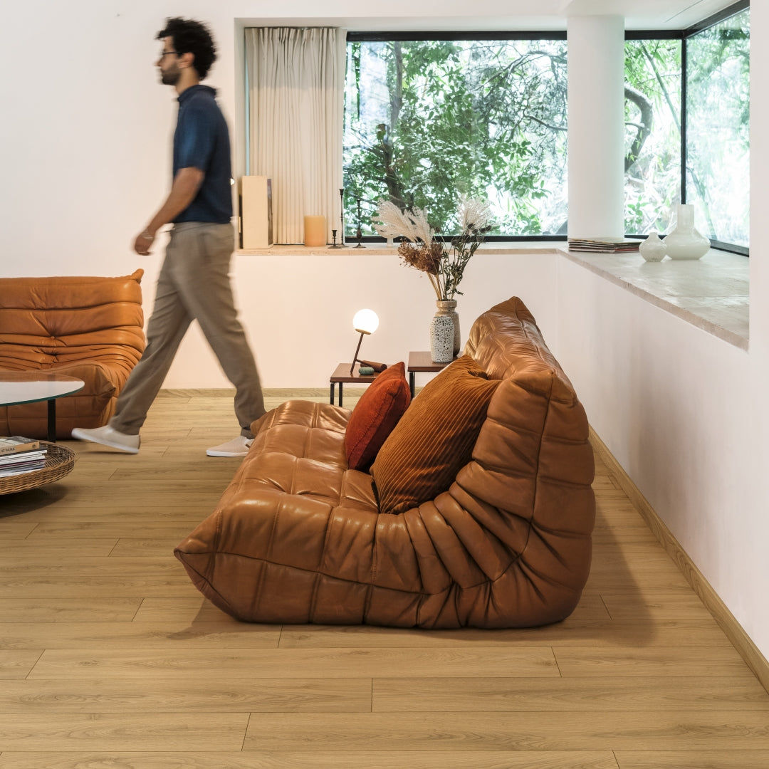 The Quickstep Classic Sandy Oak flooring mimics the natural beauty and grain of sandy oak wood, delivering a touch of sophistication and warmth to any room.