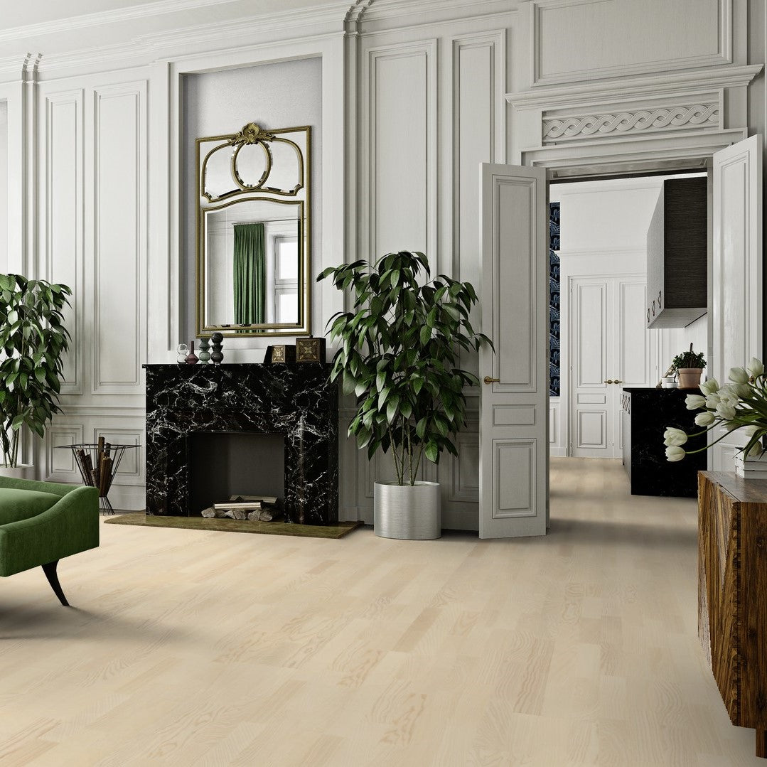 One of the hallmark features of the Boen Ash White Andante is the innovative "Live Pure" surface treatment. Featuring a serene white finish and natural wood texture that enhances any space. Offers exceptional protection from wear and moisture while maintaining the real look of wood.