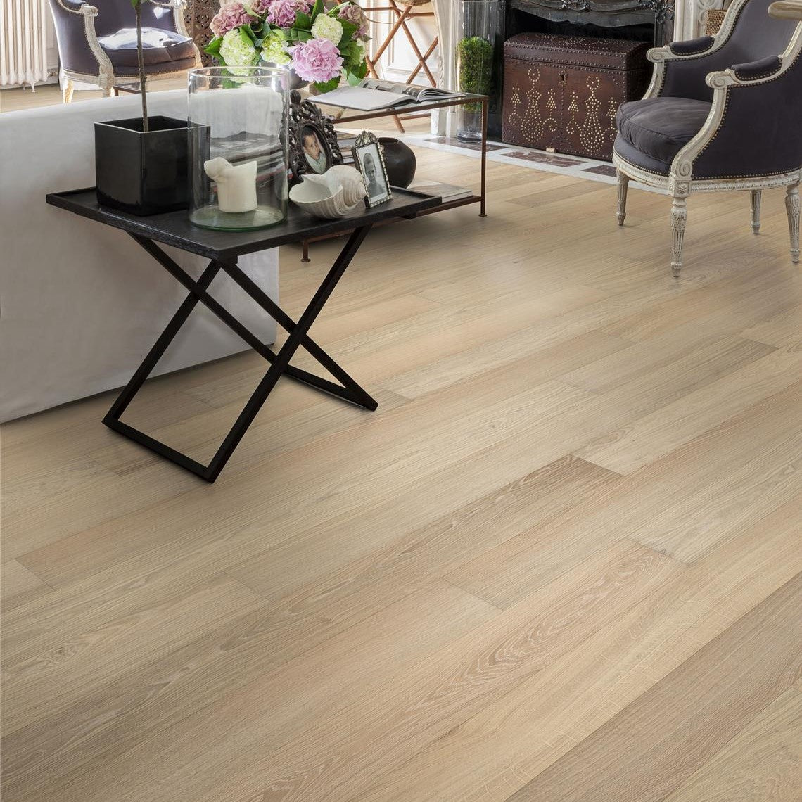 The extra long planks measure 2200mm x 187mm and have a thickness of 15mm with a 3.5mm top layer of European oak. They have been stained to give an especially light and sunny look and also feature micro bevelling on all sides. Kahrs Oak Paris floors are very hard wearing and come with a dependable Kahrs 30 year residential warranty.