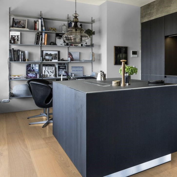 This is the new Ultra Matt version of the Kahrs Capital Collection Paris oak. Applied in a quality thin layer this superior matt lacquer allows for the natural character of the wood to shine forth, but at same time it gives a protective coat and a velvet soft touch underfoot. The especially light appearance of this floor has been achieved through the process of staining and the boards have been brushed to accentuate the steady even grain. This Paris Oak floor will offer a contemporary, sophisticated yet understated look, ideal for fitting in modern luxury apartments.