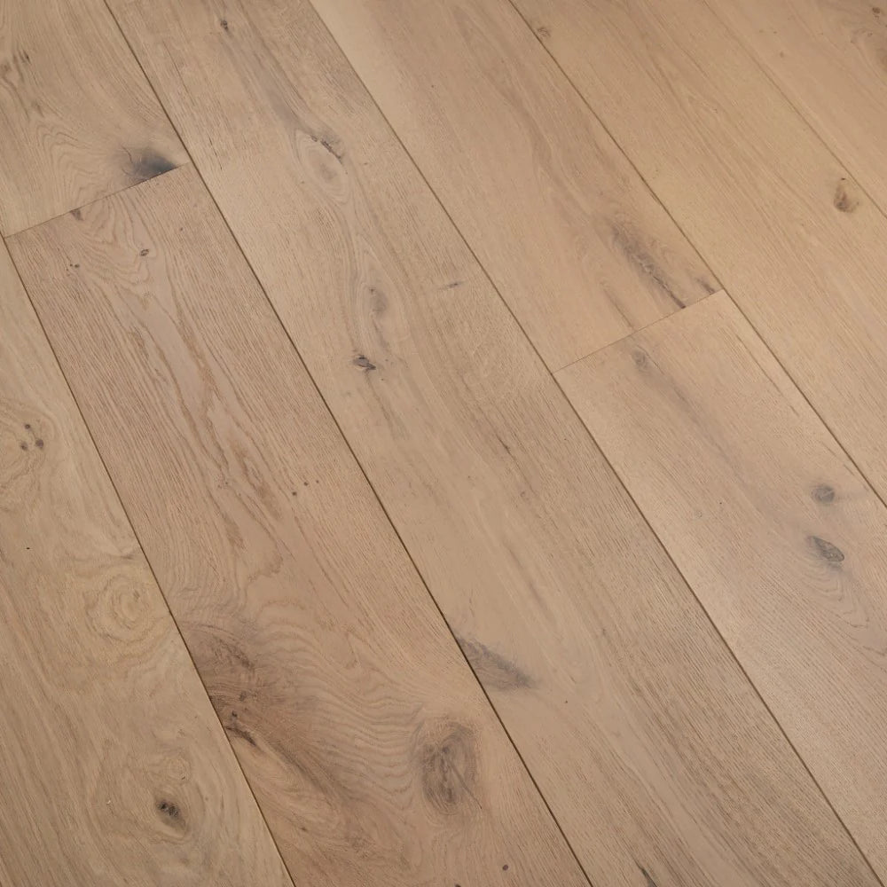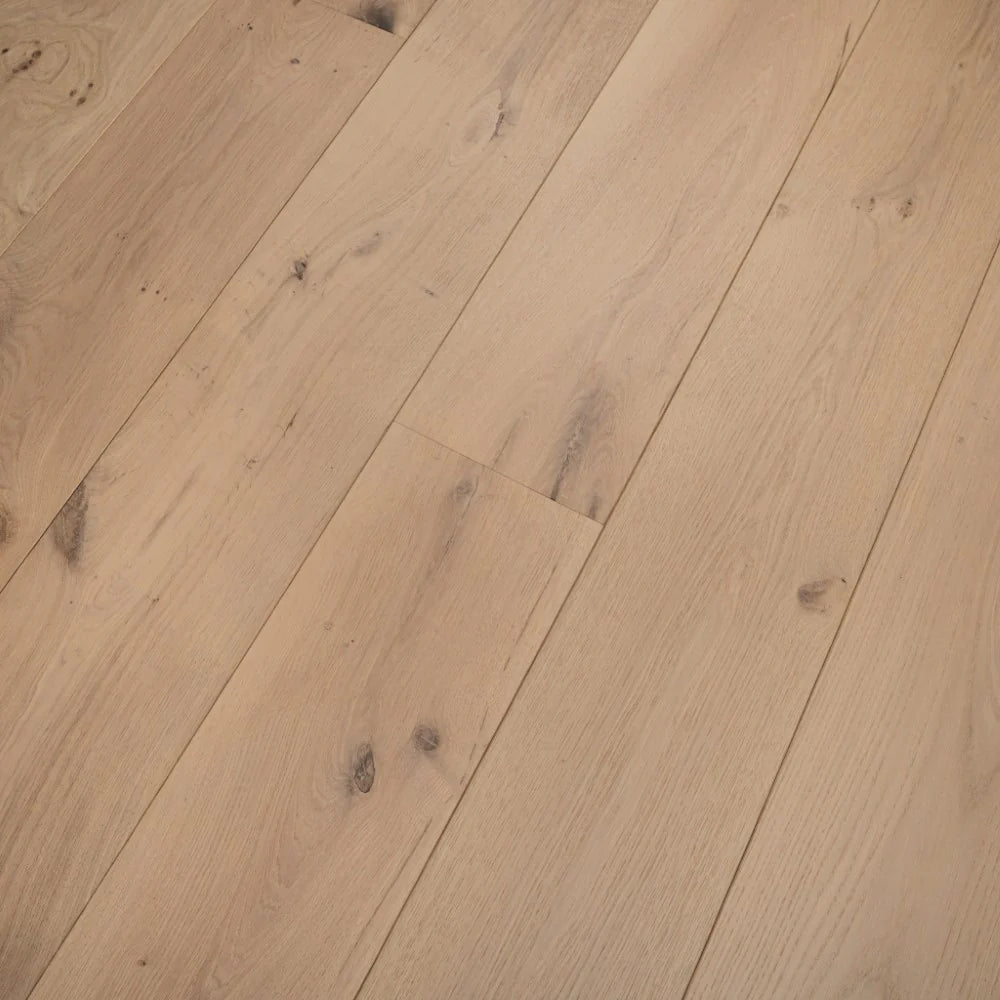 This engineered oak flooring, measuring 15x220x2200mm, features a Natural grade surface that balances character and refinement. Finished with an invisible matte lacquer, it preserves the raw, untreated look of freshly sawn wood while offering durable protection. The wide, long planks bring a sense of openness and calm, ideal for understated elegance. With a stable multi-layer construction and timeless appeal, it suits those who favour authenticity, quality, and a quiet sophistication that never dates.