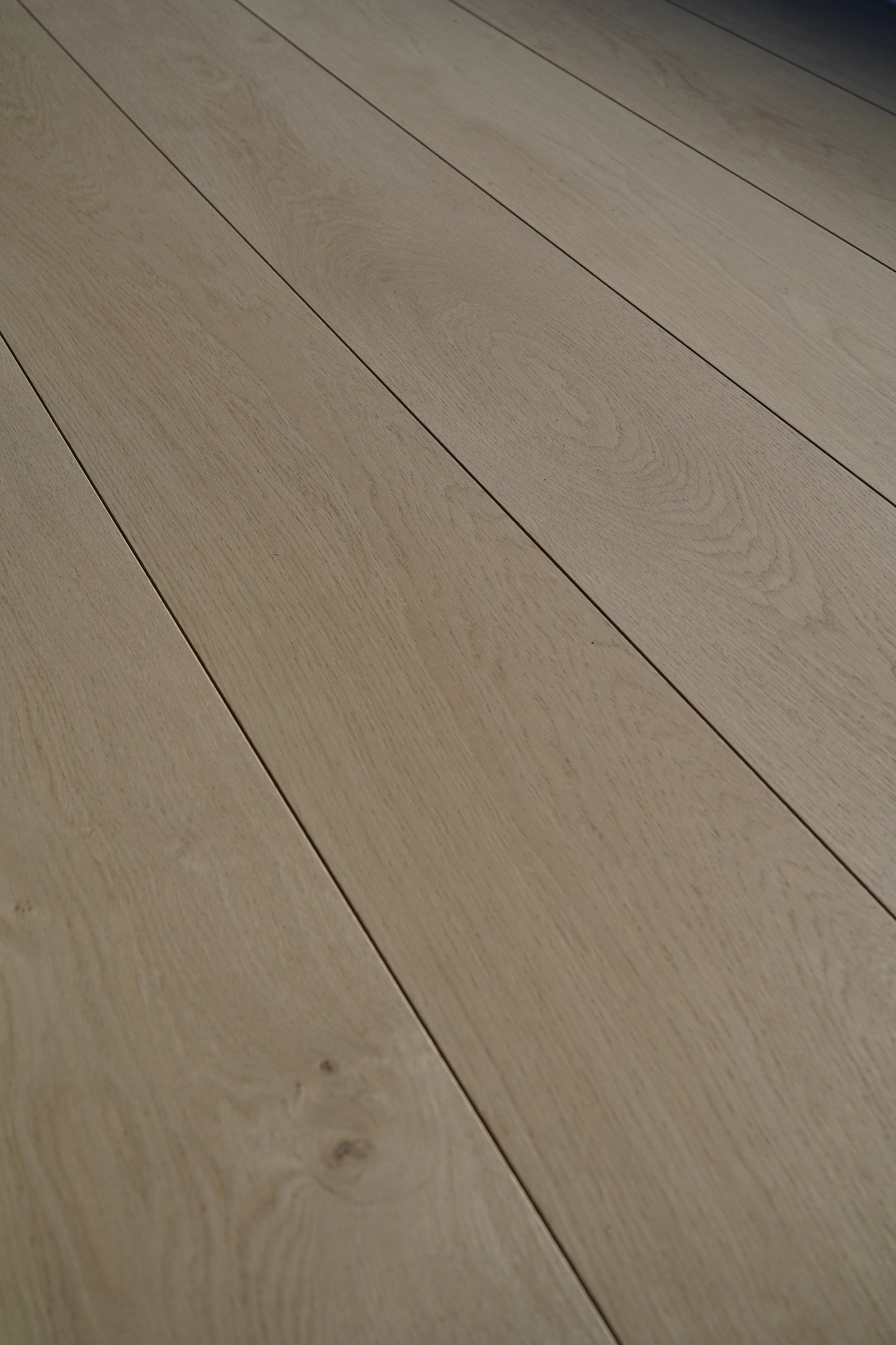 This engineered oak flooring, sized 15x240x1900mm, showcases Prime AB grade timber—clean, elegant, and virtually knot-free. A 4mm wear layer of premium oak sits atop a stable multi-ply core, combining classic beauty with modern resilience. The wide plank format enhances space and sophistication, making it ideal for refined interiors. Built to endure everyday use while preserving its smooth, uniform appearance, this flooring is a smart, long-lasting investment for those who value quality and understated luxury.