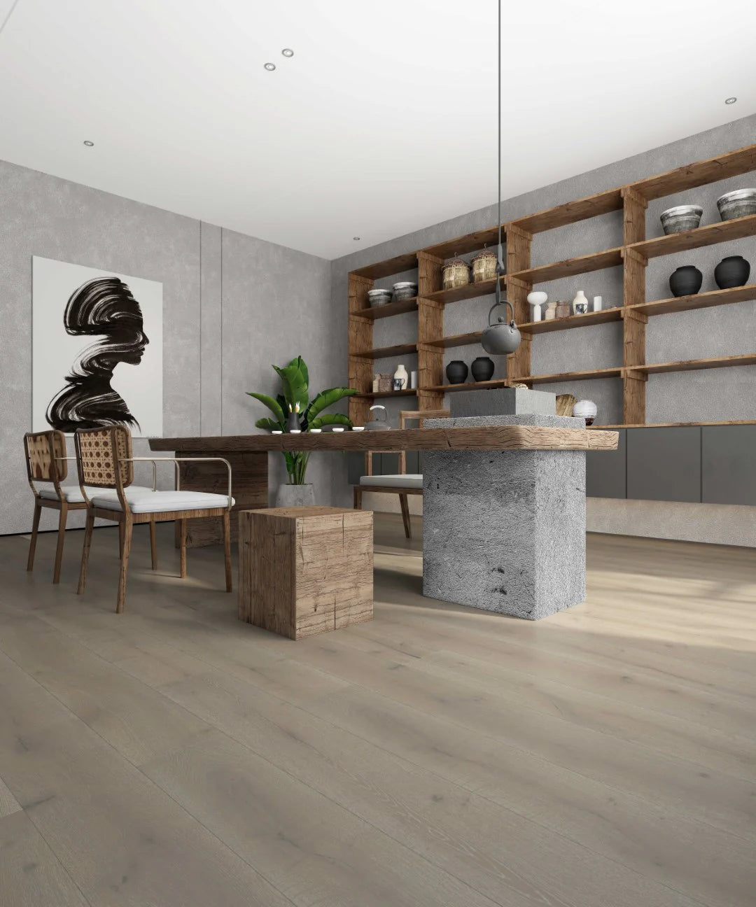This 14mm engineered oak flooring brings rustic charm with a modern twist, featuring a white-washed finish that softens the natural grain for a light, airy feel. The 190mm wide planks offer a spacious, relaxed look, while the tongue and groove system ensures a secure, traditional fit. Perfect for country-style or coastal interiors, it blends weathered character with lasting performance, ideal for those who value both heritage and easygoing elegance.