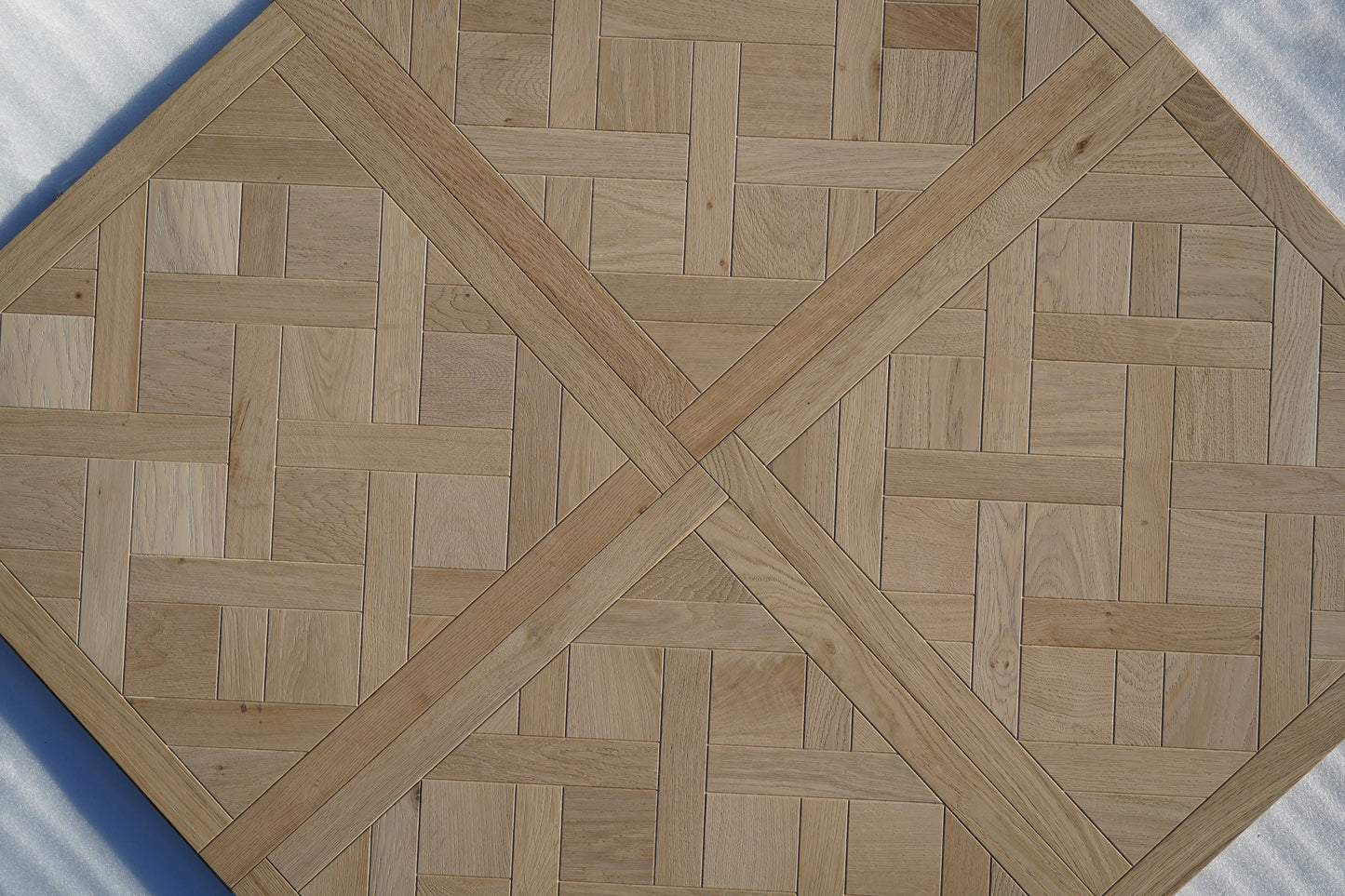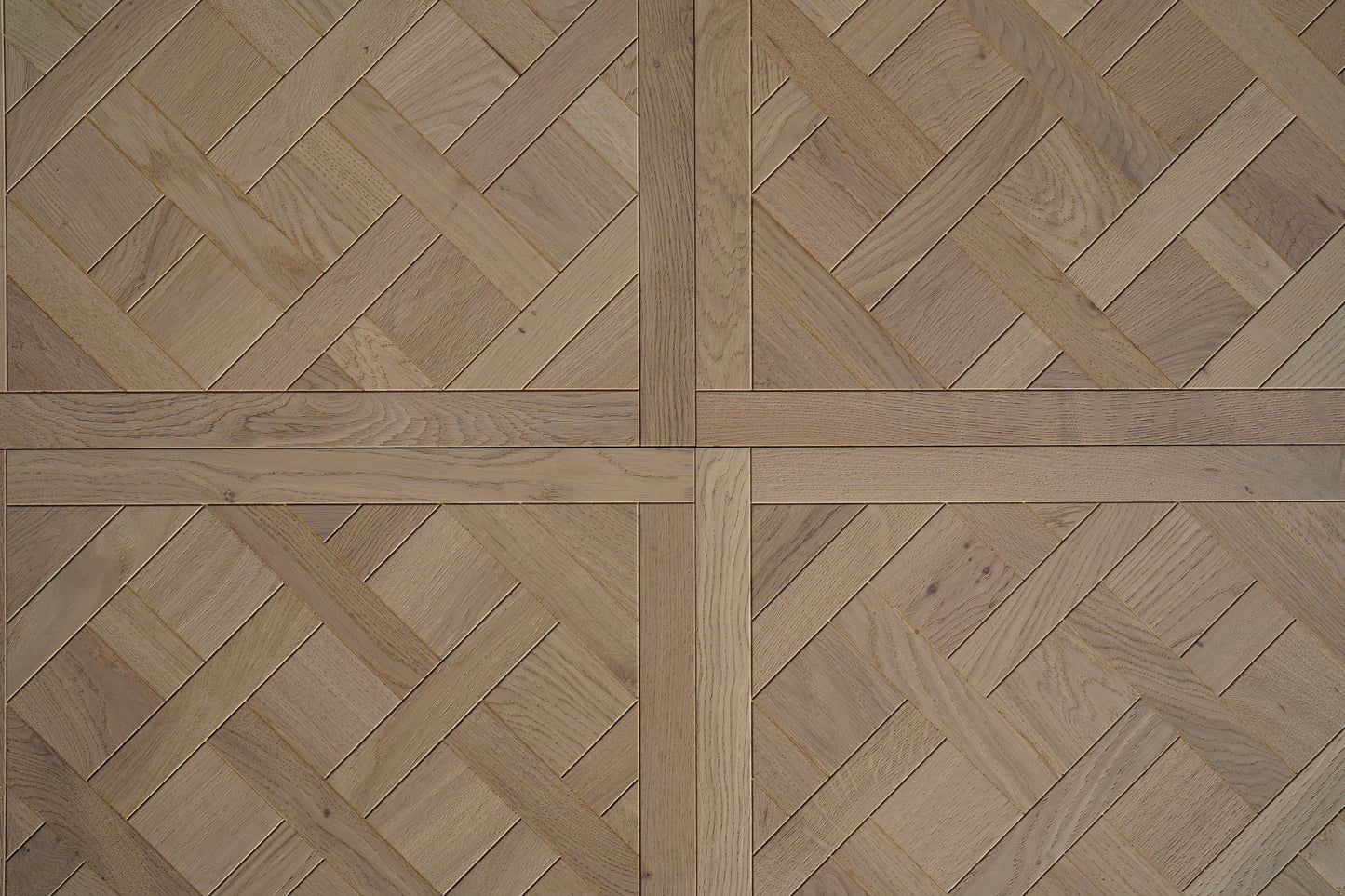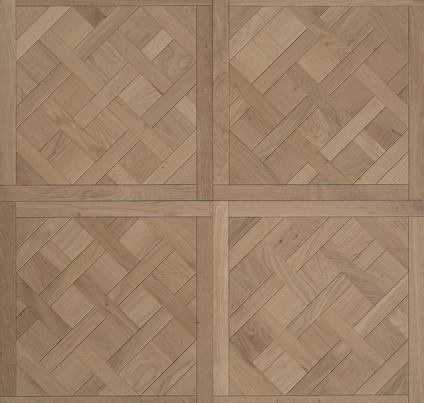 Engineered Wood Versaille Panels 15mm x 600 x 600 Brushed Invisible Lacquer - Create a luxurious and durable floor with these panels. Made from engineered wood for enhanced durability and brushed for a subtle, elegant appearance. The invisible lacquer adds a protective barrier finish.