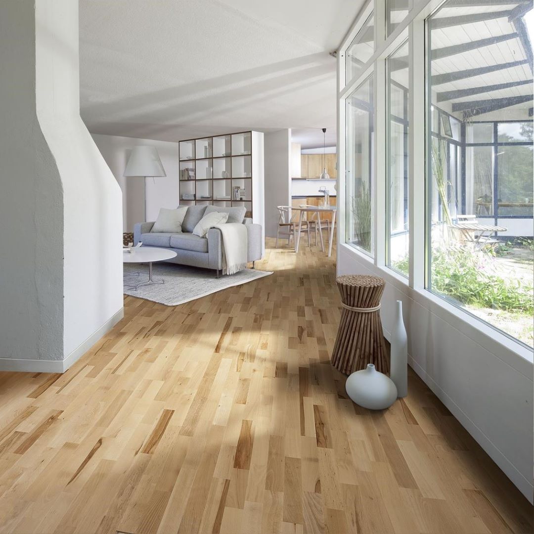 1. Kahrs Oak Hampshire (Engineered Wood): Kahrs Oak Hampshire features a classic medium brown finish that highlights the natural grain and texture of the oak. This engineered wood floor combines the beauty of traditional wood with the practical benefits of modern engineering, offering stability and durability. The rich brown color adds a touch of elegance and warmth, making it perfect for living rooms, dining areas, and bedrooms.