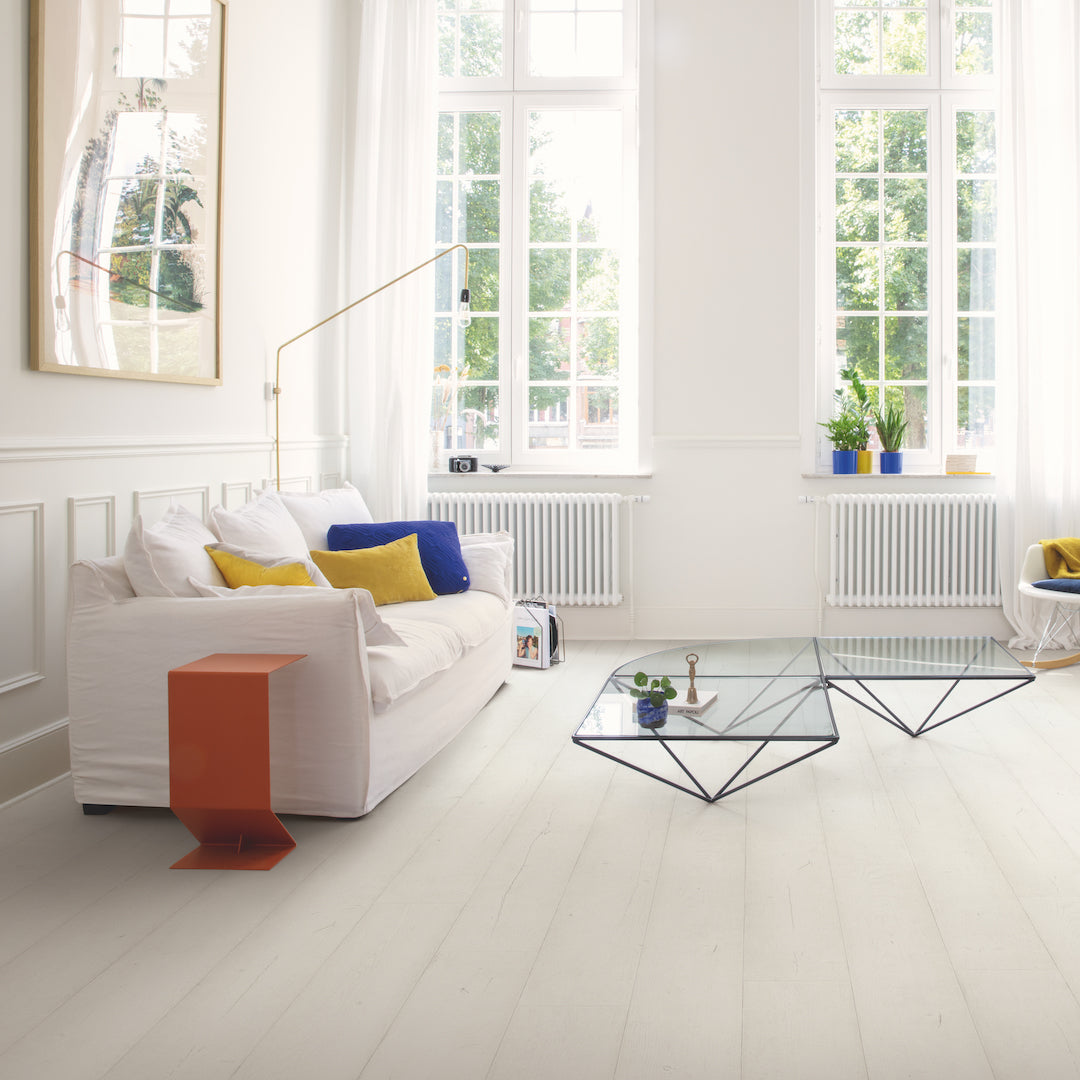Transform your space with the Quickstep Capture Painted Oak White flooring, an impeccably elegant solution that combines the timeless beauty of oak with a fresh, modern update.
