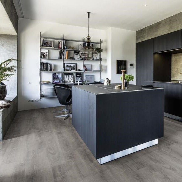 vinyl flooring, realistic wood texture, durable surface, easy maintenance, scratch resistant, stain resistant, dent resistant, high traffic flooring, dry back vinyl, Kahrs Plitvidence, elegant design, DIY installation, commercial use, home improvement, neutral tone floors.