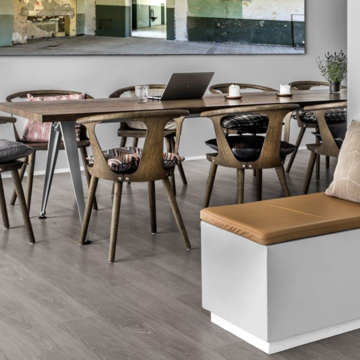 A synthetic flooring material, vinyl flooring is durable, easy to install, and affordable. Luxury vinyl flooring is rapidly gaining popularity around the world because of its aesthetic appeal, ability to withstand moisture, and versatility. These floorings are made of synthetic materials, and available in many attractive colours, textures and styles. Vinyl flooring is available in different forms such as planks and tiles. Kährs Dry Back collection comprises of a wide range of stone as well as wood designs. The Stanton DBW 229 Dry Back Vinyl Flooring belongs to the wood design category, with a wear layer of 0.3 mm. Interestingly, this happens to be one of the thickest of wear layers available for vinyl flooring. In addition to its advanced design, it offers several other impressive features such as ease of maintenance, underfloor heating compatibility, and excellent slip resistance. Based on virgin vinyl, the built of the product boasts of five different layers, out of which the top layer is a ceramic coating. This built quality makes these floors extremely strong, resilient, and resistant to water as well as scratching. As a result, these floors are highly preferred for spaces that are exposed to high levels of foot traffic. Stanton DBW 229 Dry Back Vinyl Flooring is a popular choice amongst the commercial property owners as well as homes with kids and pets because these floors absorb noise and are soft to walk on. The Kährs Stanton Dry Back vinyl flooring tiles require glue down installation. If the right installation and maintenance techniques are used, the results can be long lasting as well as aesthetically pleasing.