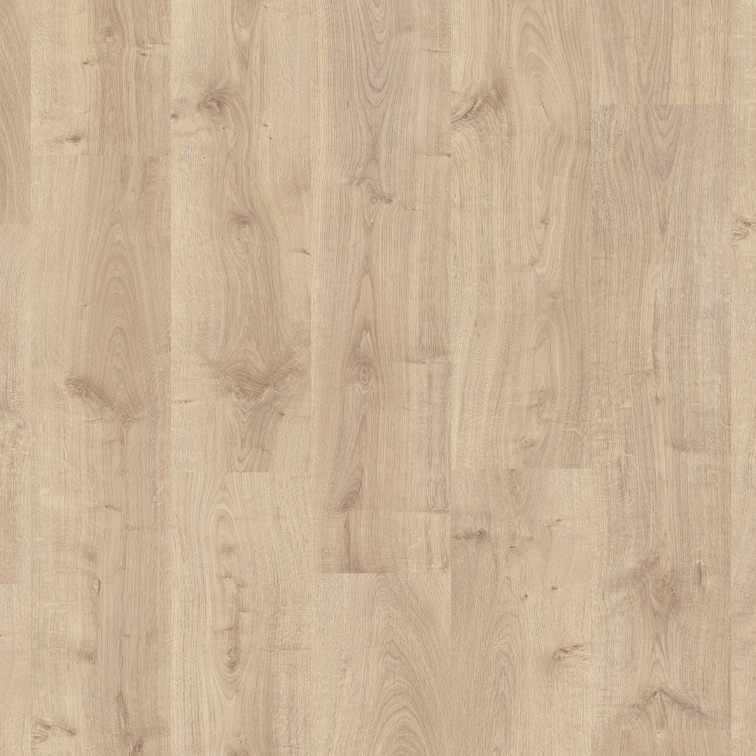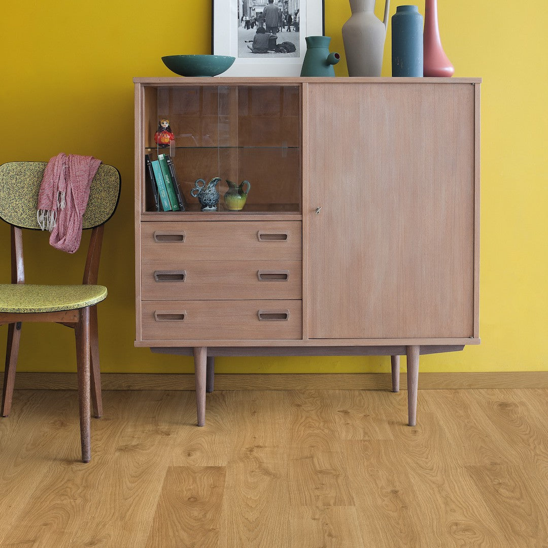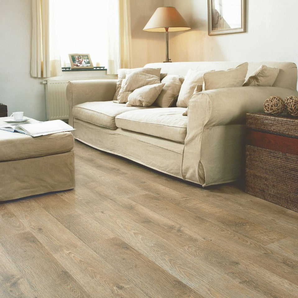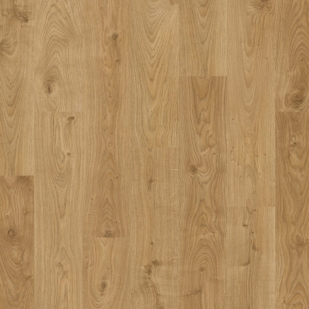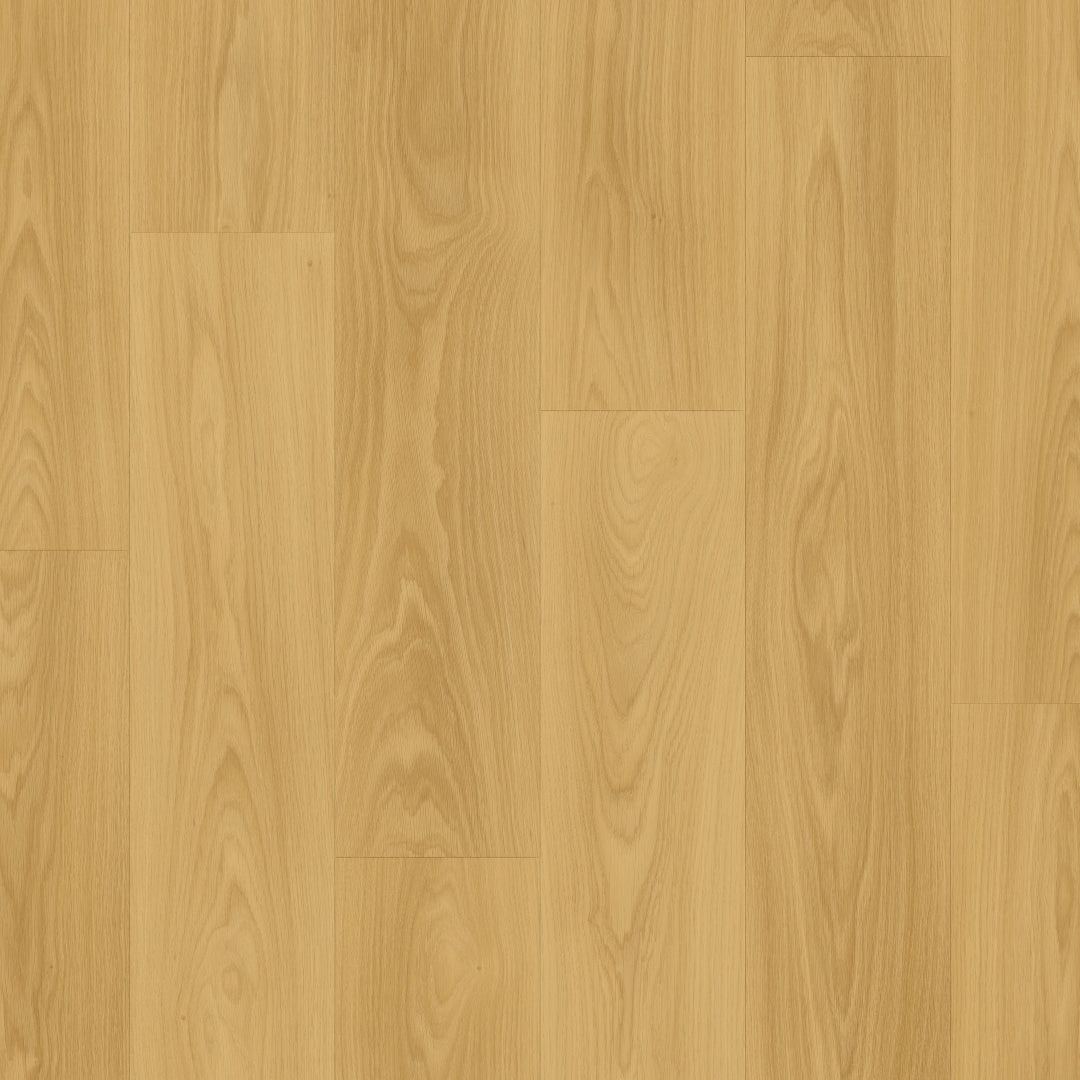 Quick-Step Largo Cambridge Oak Natural Plank (Waterproof Laminate): The Quick-Step Largo Cambridge Oak Natural Plank flooring combines the timeless appeal of oak with advanced waterproof technology. This laminate features a natural oak finish with realistic wood grain and texture, making it indistinguishable from real wood. Its waterproof design ensures that spills and moisture do not penetrate the surface, providing peace of mind in areas like kitchens and bathrooms.