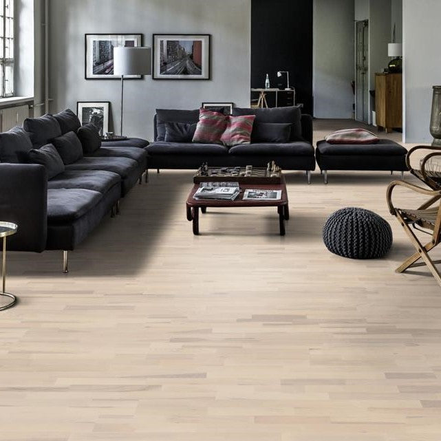 Transform your living space into a haven of beauty and tranquility with Kahrs Ground Ash Coral flooring. This flooring option seamlessly blends durability with style, making it an excellent choice for anyone looking to elevate their home's interior. The elegant ash coral shade complements any room, providing a warm, inviting ambiance that encourages relaxation and comfort.