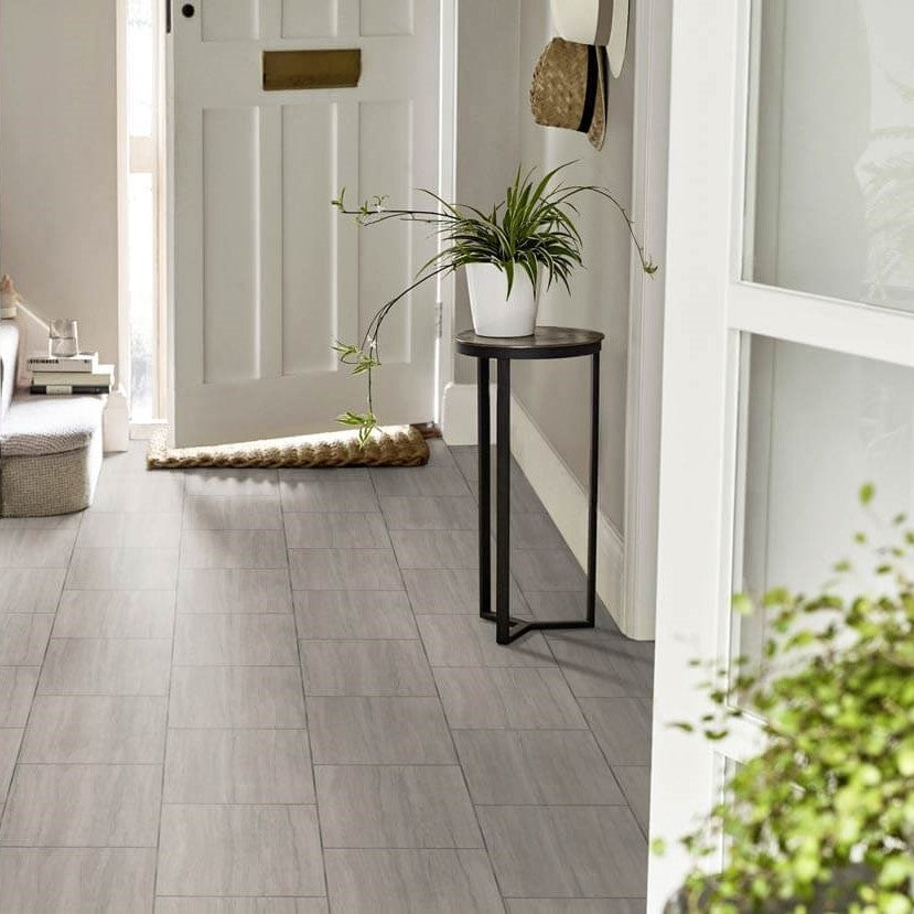 Light grey LVT tile stone floor