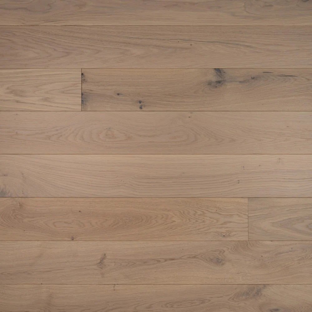 Engineered Oak White Oiled flooring features a clean, natural grade with minimal knots for a refined yet organic look. Finished with white oil, it enhances the oak's natural grain while providing a soft, light tone. Each single plank measures 150mm wide by 1900mm long and includes a durable 3mm top layer of real oak. The traditional tongue and groove joint allows for a secure fit, making it ideal for bright, contemporary or classic interiors.