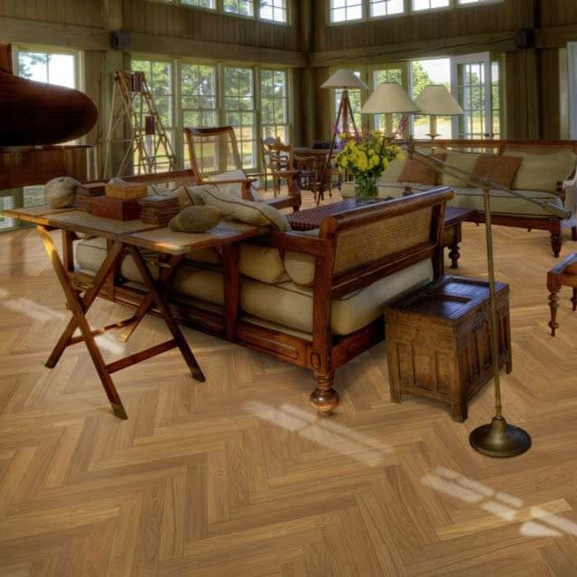 Features of the Kahrs Studio Oak Herringbone AB Natural Matt Lacquer Flooring include: